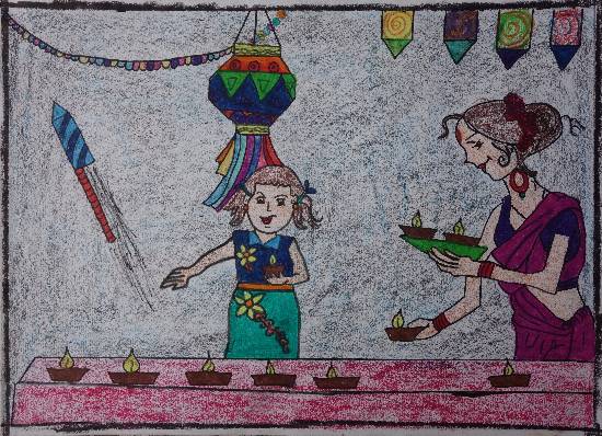 Diwali, painting by Child Artist Ishita Mayur Patil(Born : 2009)