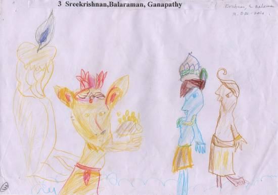 Shreekrishna, Balram, Ganesha, painting by Child Artist Sreebhadra Suraj