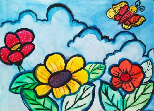 Butterfly & Flowers, painting by Child Artist Medini Mahesh Padoshi