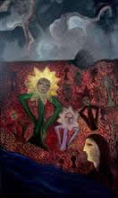 Since I belongs to a hilly pocket of Jammu and Kashmir in India, and had spent most of my primary years in small place like Panchari and Udhampur, the area as is least exposed to the modern times has retained its original culture and traditions. Which is embellished with folk lore fairytales and mystifying characters. Acquaintances and experiences with such places has, I believe have pawed a great deal of path in my present way of doing painting. I believe these places have created inspiration and process creative urge.