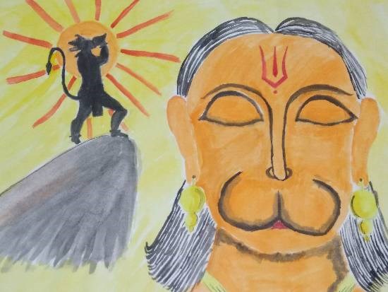 Pavanputra Hanuman, painting by Child Artist Arpita Bhat
