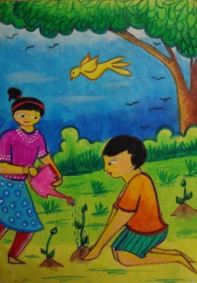 Plant Trees, painting by Child Artist Anurag Bhattacharjee