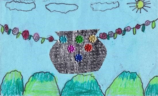 Dahi handi, painting by Child Artist Abha Shashikant Chincholi