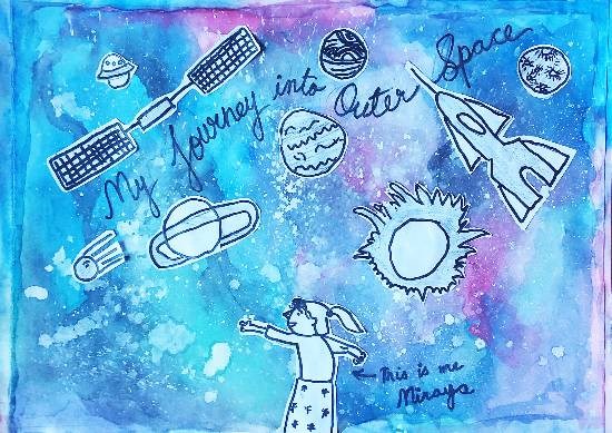 I love Space, painting by Child Artist Miraya Satyen Deodhar Shortlisted from Khula Aasmaan free kids drawing competition Keywords: space , space art , space painting , space journey , outer space , outer space painting , outer space painting contest , space exploration , space painting contest , outer space painting competition View Portfolio icon Share Facebook Twitter Whats App Pinterest Description -- Art Number 19960 Artwork Title I love Space Artist Name Miraya Satyen Deodhar Medium Watercolour & Collage on Paper Information Read the write-up on "Outer Space" This painting by child artist Miraya Satyen Deodhar received a Shortlist in Khula Aasmaan kids art competition for October to December 2017.