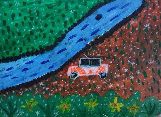 Kerala trip, painting by Child Artist Aarav Kanekar Honorable Mention in Khula Aasmaan children's art competition Keywords: Kerela trip , kerala , journey , car , road trip , travel View Portfolio icon Share Facebook Twitter Whats App Pinterest Description -- Art Number 21048 Artwork Title Kerala trip Artist Name Aarav Kanekar Medium Crayons on Paper Information This drawing was inspired the Kerala trip in May 2018. I have visited Kerala with my parents and this drawing depicts our car journey in Kerala. This painting by Aarav Kanekar, class four received a Honorable Mention in Khula Aasmaan kids art competition for July to September 2018.