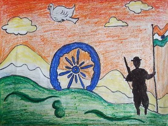 Mera Bharat Mahan, painting by Child Artist Pradnya Pratapsinh Sarnikar Child art in Khula Aasmaan, a platform for creative expression by children & young adults Keywords: Mera Bharat Mahan , soldiers , Indian army , connecting india , connecting india painting competition , connecting india painting contest , connecting india drawing contest , connecting india drawing competition View Portfolio icon Share Facebook Twitter Whats App Pinterest Description -- Art Number 21193 Artwork Title Mera Bharat Mahan Artist Name Pradnya Pratapsinh Sarnikar Size 8.27 x 11.69 inches (21.0058 x 29.6926 cm) Information I love my country INDIA. I am proud of country, tricolour . Also, proud of our soldiers who keep us safe from enemies.