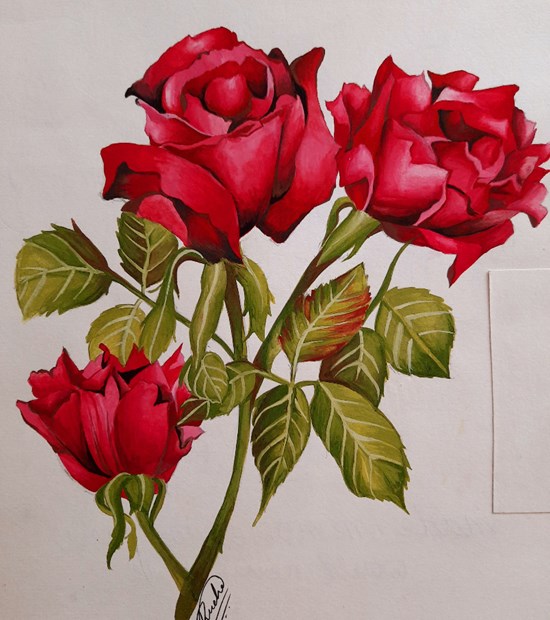 Pink Rose Flowers painting by Rucha Damle Keywords: rose , flowers , pink rose View Portfolio icon Share Facebook Twitter Whats App Pinterest Description -- Art Number 23315 Artwork Title Pink Roses Artist Name Rucha Vishwesh Damle Medium Poster colour on Paper Size 8 x 8 inches (20.32 x 20.32 cm) Information I wanted to capture the delicate yet bold ensemble of a rose plant in a live painting.