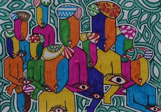 Revenge makes blind Shortlisted in Khula Aasmaan art competition for college students Keywords: revenge , figurative , blind , people , blind people , group , group of people , eye View Portfolio icon Share Facebook Twitter Whats App Pinterest Description -- Art Number 23380 Artwork Title Revenge makes blind Artist Name MUKUL KUMAR Medium Sketch Pen on Paper Size 8.27 x 11.69 inches (21.0058 x 29.6926 cm) Information This painting by young artist Mukul Kumar (20 years) received a Shortlisted in Khula Aasmaan art competition for college students for October to December 2019. "My drawing ""REVENGE MAKES BLIND"" is loosely based on the thought of the father of our nation Mahatma Gandhi ji. As Gandhiji believe in:- "AN EYE FOR AN EYE ONLY ENDS UP MAKING THE WHOLE WORLD BLIND". With this thought Gandhiji wanted to teach us that, taking revenge can only leads to destruction which ends up everything. As in my drawing, I have tried to show a group of people who took each other's I in their hand which symbolizes REVENGE and consequently no one is left with eyes to see the beautiful world, meaning that their BLIND which symbolizes END. So through this drawing, I want to spread the noble teachings of our Bapu and make the world a peaceful and better place to live in. For making this drawing I have used plain A4 size sheet of paper on which I have drawn figures in contemporary strike with the help of sketch colors for highlighting the drawing I have left some space as border and draw on a black margin dividing border and subject."