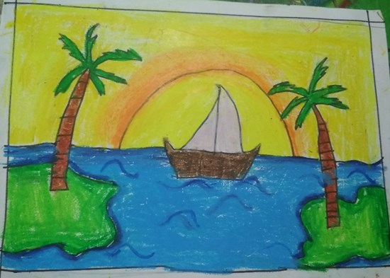 Sunset, painting by Child Artist Neel Kirtane View Portfolio icon Share Facebook Twitter Whats App Pinterest Description -- Art Number 23537 Artwork Title Sunset Artist Name Neel Kirtane Medium Watercolour and pastel on Sheet Size 30 x 21 inches (76.2 x 53.34 cm) Information Landscape drawing of boat sailing during sunset