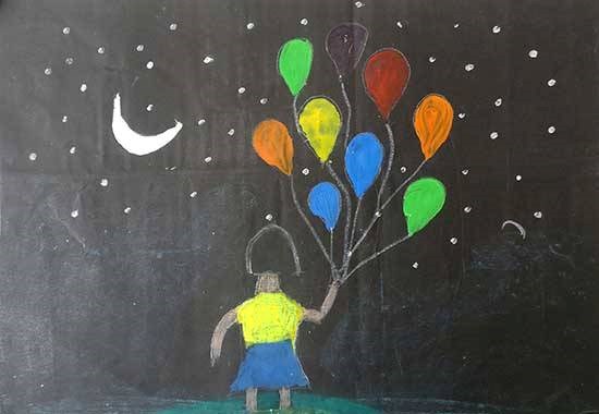 This painting by child artist Adhya Dongare (5 years) received a Shortlist in Khula Aasmaan kids drawing competition for August 2021.