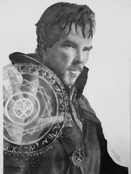 Dr. Strange, painting by Child Artist Shriraj Chavan View Portfolio icon Share Facebook Twitter Whats App Pinterest Description -- Art Number 24634 Artwork Title Dr. Strange Artist Name Shriraj Chavan Medium Graphite pencil on Sheet Information This is a portrait of one of the most powerful Characters in marvel cinemas. This Drawing is made by Graphite Pencils on 200gsm rough A3 size sheet.To enhance the work, Printing style is used.There is use of Mono zero eraser and white ball point pen for finishing touches and modification