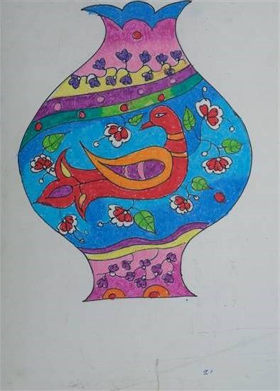 Designer flowerpot Shortlisted from Art contest no. 1 for all Ashramshalas Keywords: Designer flowerpot , flowerpot , still life , curved lines , circles , leaves , peacock View Portfolio icon Share Facebook Twitter Whats App Pinterest Description -- Art Number 25308 Artwork Title Designer flowerpot Artist Name Minakshi Bhangare Medium Oil Pastel and Sketch pen on Paper Size 11.69 x 8.27 inches (29.6926 x 21.0058 cm) Information Minakshi Bhangare (class 7), Kohor Ashramshala, Nashik PO - Shortlisted from Art contest no. 1 for all Ashramshalas of Tribal Development Department, Govt. of Maharashtra