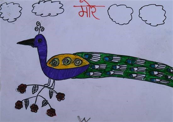 National bird - Peacock Shortlisted from Art contest no. 1 for all Ashramshalas Keywords: peacock , colorful bird , bird , national bird , cloud , flowers , leaves , feather , crest , India's national bird View Portfolio icon Share Facebook Twitter Whats App Pinterest Description -- Art Number 25493 Artwork Title National bird - Peacock Artist Name Sarika Padavi Medium Sketch Pen on Paper Size 9.25 x 6.49 inches (23.495 x 16.4846 cm) Information Sarika Padavi (class 2), Pangan Ashramshala, Dhule PO - Shortlisted from Art contest no. 1 for all Ashramshalas of Tribal Development Department, Govt. of Maharashtra