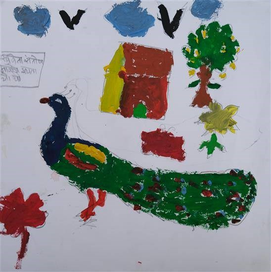 Beautiful Peacock Shortlisted from Art contest no. 1 for all Ashramshalas Keywords: Beautiful Peacock , peacock , colorful peacock , bird , red flower , crest , India's national bird , national bird View Portfolio icon Share Facebook Twitter Whats App Pinterest Description -- Art Number 25557 Artwork Title Beautiful Peacock Artist Name Sunita Malache Medium Poster colour on Paper Size 11.02 x 11.02 inches (27.9908 x 27.9908 cm) Information Sunita Malache (class 4), Vihirgaon Ashramshala, Dhule PO - Shortlisted from Art contest no. 1 for all Ashramshalas of Tribal Development Department, Govt. of Maharashtra