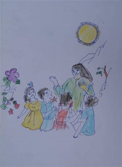 Children listening story Shortlisted from Art contest no. 1 for all Ashramshalas Keywords: children , listening story , girls , boys , story teller , mountain , sun , story time View Portfolio icon Share Facebook Twitter Whats App Pinterest Description -- Art Number 25656 Artwork Title Children listening story Artist Name Priyanka Dhurve Medium Mixed Media on Paper Size 11.69 x 16.53 inches (29.6926 x 41.9862 cm) Information Priyanka Dhurve (class 3), Dhanora Ashramshala, Dharani PO - Shortlisted from Art contest no. 1 for all Ashramshalas of Tribal Development Department, Govt. of Maharashtra