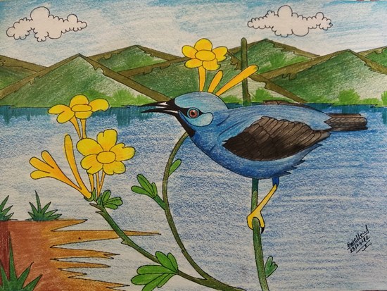 Bird, painting by Child Artist Adip Songire View Portfolio icon Share Facebook Twitter Whats App Pinterest Description -- Art Number 25952 Artwork Title Bird Artist Name Adip Songire Medium Pencil colours on Paper Information Colour pencil artwork