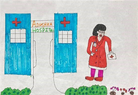 My dream is to be a Doctor Shortlisted from Art contest no. 2 for all Ashramshalas Keywords: my dream , a Doctor , stethoscope , hospital , Doctor's suitcase , wearing glasses , grass View Portfolio icon Share Facebook Twitter Whats App Pinterest Description -- Art Number 26242 Artwork Title My dream is to be a Doctor Artist Name Madhuri Chaudhari Medium Sketch Pen on Paper Size 8.26 x 11.43 inches (20.9804 x 29.0322 cm) Information Madhuri Chaudhari (class 5), Mundhegaon Ashramshala, Nashik PO - Shortlisted from Art contest no. 2 for all Ashramshalas of Tribal Development Department, Govt. of Maharashtra