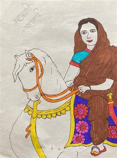 Maharani Tarabai Shortlisted from Art contest no. 2 for all Ashramshalas Keywords: Maharani Tarabai , Ch. Rajaram Bhonsale's wife , equestrian , a brave ruler , Bhadrakali , sword , traditional costume View Portfolio icon Share Facebook Twitter Whats App Pinterest Description -- Art Number 26324 Artwork Title Maharani Tarabai Artist Name Pooja Bhale Medium Sketch Pen & Ball Pen on Paper Size 11.43 x 8.26 inches (29.0322 x 20.9804 cm) Information Pooja Bhale (class 10), Chas Ashramshala, Nashik PO - Shortlisted from Art contest no. 2 for all Ashramshalas of Tribal Development Department, Govt. of Maharashtra