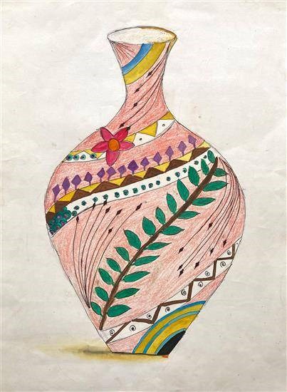 Designer flower vase Shortlisted from Art contest no. 2 for all Ashramshalas Keywords: Designer flower vessel , flower vase , flower pot , curved lines , leaves , circles , design on flowerpot , still life View Portfolio icon Share Facebook Twitter Whats App Pinterest Description -- Art Number 26444 Artwork Title Designer flower vase Artist Name Rohan Sapate Medium Mixed Media on Paper Size 10.64 x 14.58 inches (27.0256 x 37.0332 cm) Information Rohan Sapate (class 8), Mendhavan Ashramshala, Dahanu PO - Shortlisted from Art contest no. 2 for all Ashramshalas of Tribal Development Department, Govt. of Maharashtra