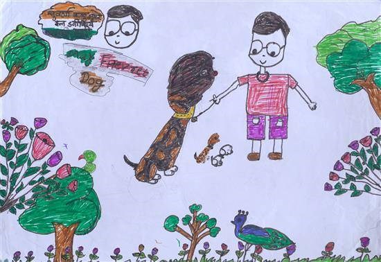 My pet Dog Shortlisted from Art contest no. 3 for all Ashramshalas Keywords: my pet dog , little boy , boy holded dog , roses , peacock , grass View Portfolio icon Share Facebook Twitter Whats App Pinterest Description -- Art Number 26662 Artwork Title My pet Dog Artist Name Suvarna Zugare Medium Sketch Pen on Paper Size 8.26 x 11.43 inches (20.9804 x 29.0322 cm) Information Suvarna Zugare (class 5), Shirol Ashramshala, Shahapur PO - Shortlisted from Art contest no. 3 for all Ashramshalas of Tribal Development Department, Govt. of Maharashtra