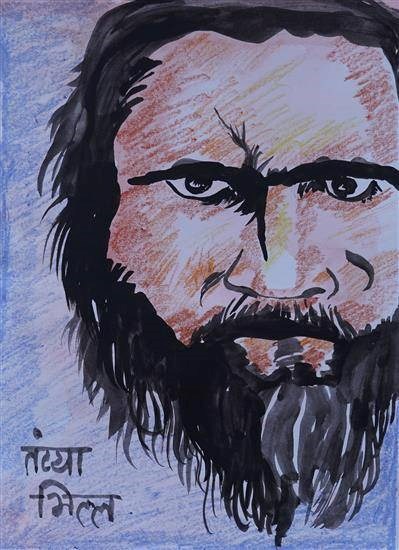 Tantia Bhil Shortlisted from Art contest no. 3 for all Ashramshalas Keywords: Tantia Bhil , Tantiya Mama , Bhil tribe , a freedom fighter , mustacho , beard , wrinkles on face View Portfolio icon Share Facebook Twitter Whats App Pinterest Description -- Art Number 26818 Artwork Title Tantia Bhil Artist Name Lalit Vatas Medium Oil pastels and Watercolour on Paper Size 8.26 x 11.81 inches (20.9804 x 29.9974 cm) Information Lalit Vatas (class 8), Bhuvan Ashramshala, Nashik PO - Shortlisted from Art contest no. 3 for all Ashramshalas of Tribal Development Department, Govt. of Maharashtra