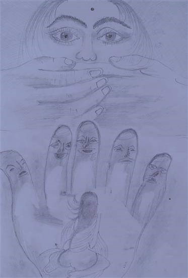 Stay safe Shortlisted from Art contest no. 3 for all Ashramshalas Keywords: stay safe , girl , untied hairs , hand , sitting girl , closed mouth View Portfolio icon Share Facebook Twitter Whats App Pinterest Description -- Art Number 26933 Artwork Title Stay safe Artist Name Ravina Doke Medium Pencil shading on Paper Size 11.81 x 8.26 inches (29.9974 x 20.9804 cm) Information Ravina Doke (class 9), Shirpunje Ashramshala, Rajur PO - Shortlisted from Art contest no. 3 for all Ashramshalas of Tribal Development Department, Govt. of Maharashtra