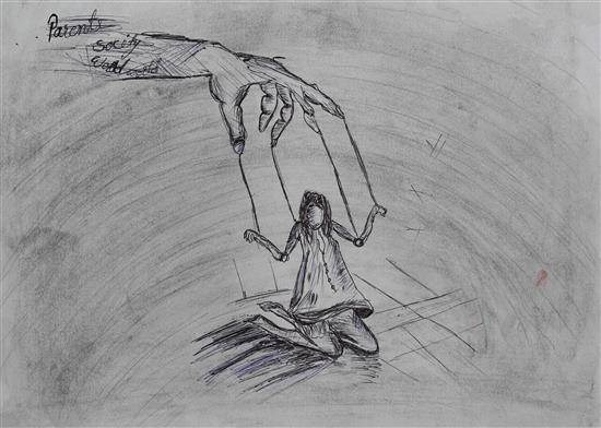 Be strong and confident Shortlisted from Art contest no. 3 for all Ashramshalas Keywords: be strong and confident , sitting girl , hangs ropes to hand , untied hair , short hair View Portfolio icon Share Facebook Twitter Whats App Pinterest Description -- Art Number 26999 Artwork Title Be strong and confident Artist Name Raj Biswas Medium Pencil and black pen on Paper Size 8.26 x 11.81 inches (20.9804 x 29.9974 cm) Information Raj Biswas (class 9), Regadi Ashramshala, Gadchiroli PO - Shortlisted from Art contest no. 3 for all Ashramshalas of Tribal Development Department, Govt. of Maharashtra