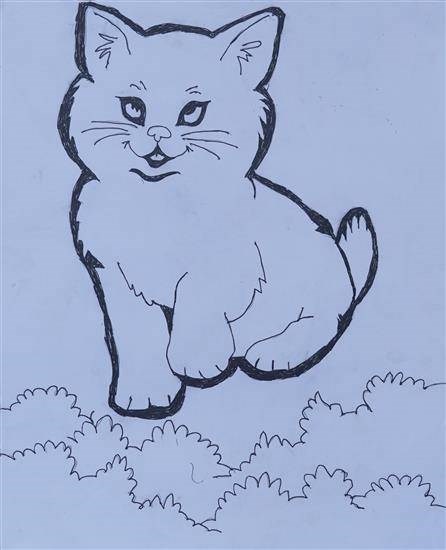 A cute Cat Shortlisted from Art contest no. 4 for all Ashramshalas Keywords: a cute cat , bunchy short tail , furry , smile , black pen art , grass , domestic species , small carnivorous View Portfolio icon Share Facebook Twitter Whats App Pinterest Description -- Art Number 27214 Artwork Title A cute Cat Artist Name Apurva Kumare Medium Pen on Paper Size 14.96 x 10.62 inches (37.9984 x 26.9748 cm) Information Apurva Kumare (class 8), Jambhulghat Ashramshala, Chimur PO - Shortlisted from Art contest no. 4 for all Ashramshalas of Tribal Development Department, Govt. of Maharashtra
