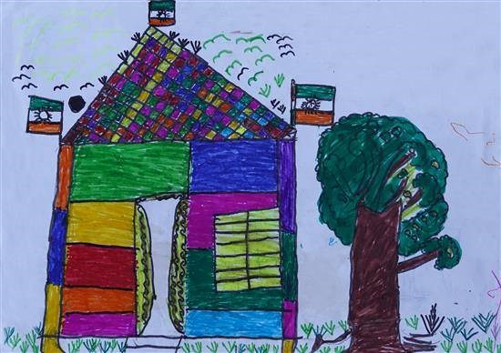 Colorful home Shortlisted from Art contest no. 4 for all Ashramshalas Keywords: Colorful home , Tiranga , Indian flag , grass , tree branch , window , lines View Portfolio icon Share Facebook Twitter Whats App Pinterest Description -- Art Number 27313 Artwork Title Colorful home Artist Name Rajani Madavi Medium Sketch Pen on Paper Size 8.26 x 11.81 inches (20.9804 x 29.9974 cm) Information Rajani Madavi (class 7), Tadgaon Ashramshala, Bhamragad PO - Shortlisted from Art contest no. 4 for all Ashramshalas of Tribal Development Department, Govt. of Maharashtra