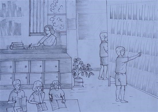 My favorite place library Shortlisted from Art contest no. 4 for all Ashramshalas Keywords: my favorite place , library , cupboard , show plant , librarian , lots of books , children busy in reading , cupboard ful books View Portfolio icon Share Facebook Twitter Whats App Pinterest Description -- Art Number 27352 Artwork Title My favorite place library Artist Name Ranjit Tumbada Medium Pencil and black pen on Paper Size 10.62 x 14.96 inches (26.9748 x 37.9984 cm) Information Ranjit Tumbada (class 7), Dhamangaon Ashramshala, Dahanu PO - Shortlisted from Art contest no. 4 for all Ashramshalas of Tribal Development Department, Govt. of Maharashtra