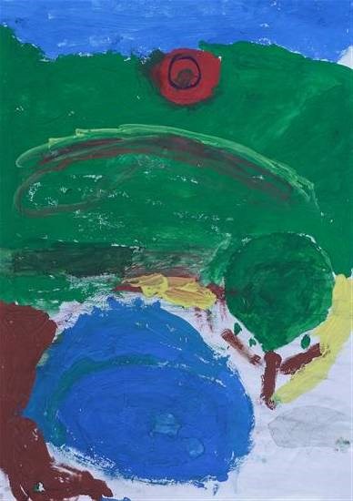 Silence at pond Shortlisted from Art contest no. 4 for all Ashramshalas Keywords: silence at pond , greenery , red Sun , red soil , blue sky , premises of pond View Portfolio icon Share Facebook Twitter Whats App Pinterest Description -- Art Number 27615 Artwork Title Silence at pond Artist Name Vikram Gavade Medium Poster colour on Paper Size 11.61 x 8.26 inches (29.4894 x 20.9804 cm) Information Vikram Gavade (class 6), Jaravandi Ashramshala, Bhamragad PO - Shortlisted from Art contest no. 4 for all Ashramshalas of Tribal Development Department, Govt. of Maharashtra
