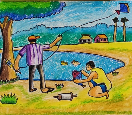 Kite Festival, painting by Child Artist Drashy Shah View Portfolio icon Share Facebook Twitter Whats App Pinterest Description -- Art Number 28014 Artwork Title Kite Festival Artist Name Drashy Shah Medium Oil Pastel and Sketch pen on Paper Size 11 x 16 inches (27.94 x 40.64 cm) Information This is a picture of kite festival. Postal colors are used in this picture.