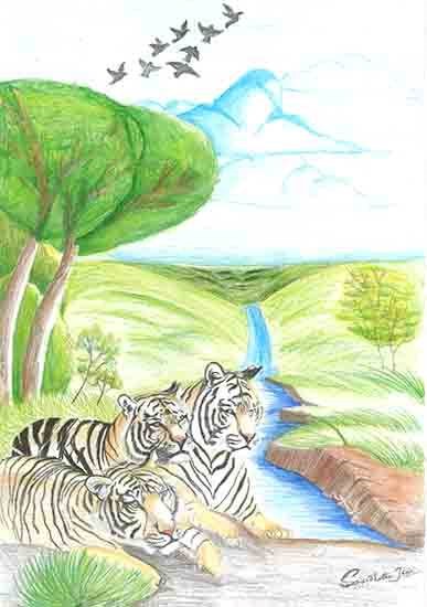 International Tiger Day painting by Saisidhartha Jena Keywords: International Tiger Day , tiger , animal , wildlife , wild animal , national animal View Portfolio icon Share Facebook Twitter Whats App Pinterest Description -- Art Number 28194 Artwork Title International Tiger Day Artist Name Sai Sidhartha Jena Medium Colour pencils on Paper Size 16.5 x 8.27 inches (41.91 x 21.0058 cm) Information International Tiger Day is celebrated on July 29th every year to raise awareness about the endangered tiger species and promote conservation efforts. This year's theme is Tigers The Next Generation which focuses on the importance of tiger conservation for future generations.