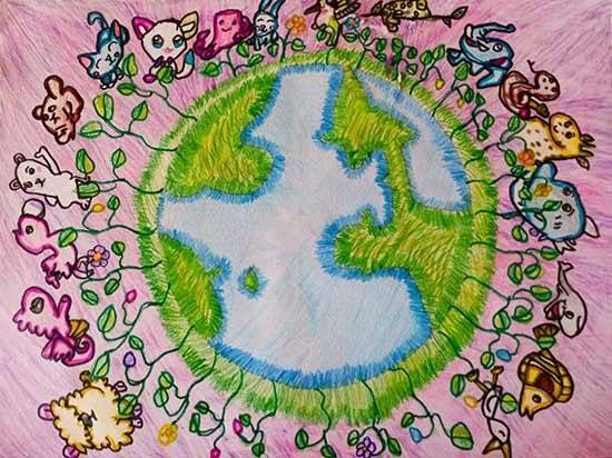 Environment painting by Yazhisai R Keywords: environment , green planets , grass , colourful flowers , sea animals , land animals , birds , Earth View Portfolio icon Share Facebook Twitter Whats App Pinterest Description -- Art Number 28399 Artwork Title Environment Artist Name Yazhisai R Medium Colour Pencil on Paper Size 8.3 x 11.7 inches (21.082 x 29.718 cm) Information The Earth is fulfilled with green planets and grass. The plant has beautiful and colourful flowers. And all sea animals, land animals and birds are around that lovely green Earth. So, this drawing explain that The Earth is not only for humans. It is for all animals and plants too.