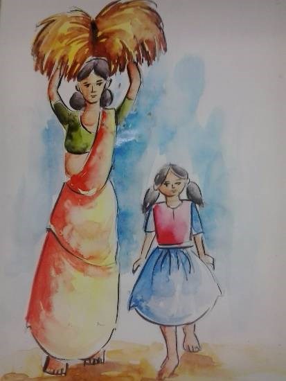 Woman with girl, painting by Child Artist Krisha Amish Shah