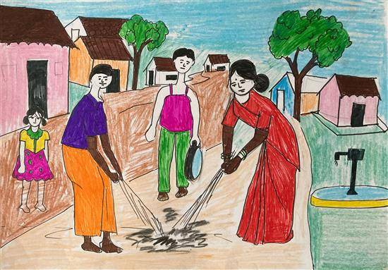 View Details One step towards cleanliness Oil Pastel and Sketch pen on Paper 11.69 x 16.53 inches 29.69 x 41.99 cm