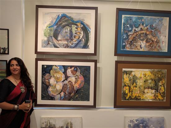 Amita Goswami with her paintings at Indiaart Gallery, Pune - 3