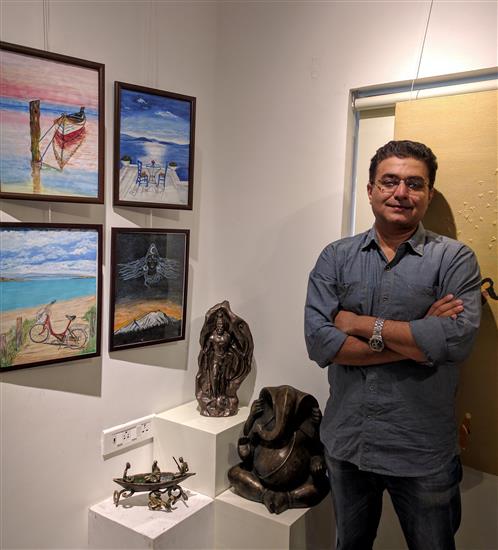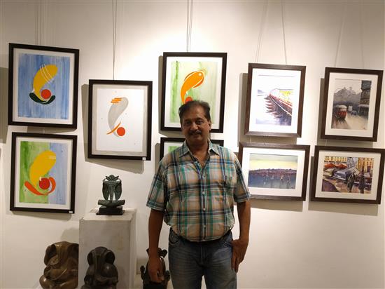 • Varjavan Dastoor with his paintings at the second edition of Emerging Artists Show at Indiaart Gallery, Pune