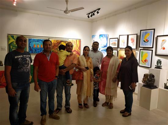 • Nupur Sinha with her family at the second edition of Emerging Artists Show at Indiaart Gallery, Pune