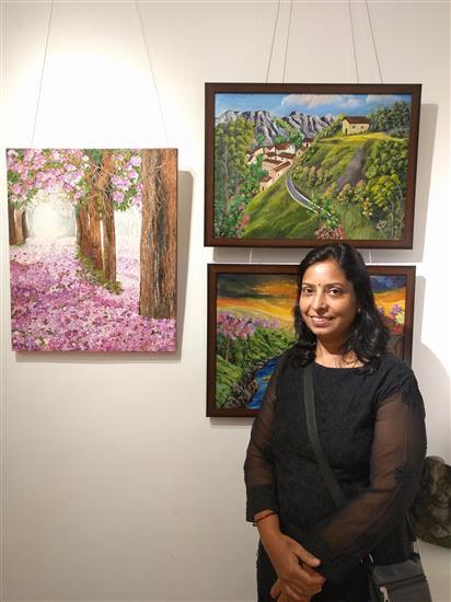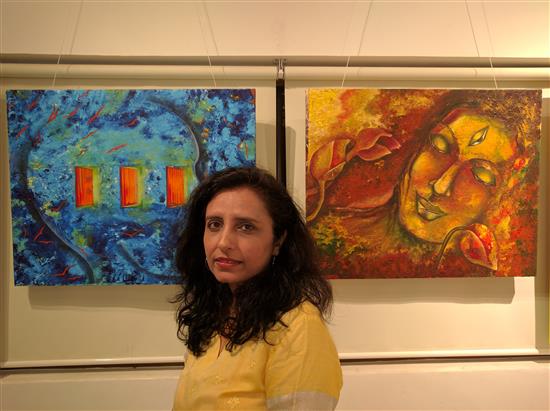 Rupal Buch with her paintings at Indiaart Gallery, Pune