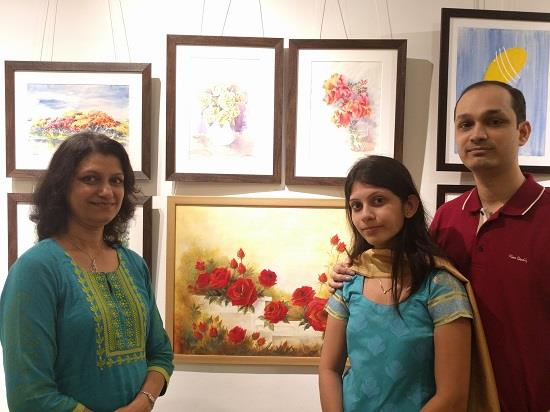• Sanika Dhanorkar with family at the second edition of Emerging Artists Show at Indiaart Gallery, Pune