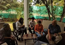 Chai pe charcha - Guests chatting over a cup of tea at Indiaart Gallery, Pune