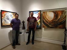 Vikram Jathav with his friend at Indiaart Gallery, Pune