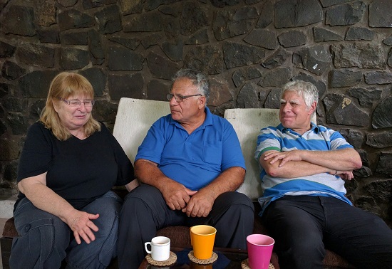 Yedidia Naim in front of the paintings by Kishor Randiwe. She loved and spent considerable time looking at these paintings.