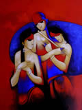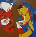 Arvind Kolapkar's works are bright, happy expressions of joyous unions. In most of his paintings, one observes an amorous couple or groups of friends
