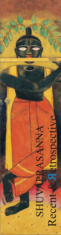 Born 1947, Shuvaprasanna, or Shuvada as he is fondly called, studied art at the Indian College of Art in Kolkata. His checkered career spanning over four decades includes a varied range of work as a graphic artist, painter, educator, writer and art activist. The urban milieu of Kolkata - its existential agony and survival instinct, its joys and people - the city to which he belongs, has figured prominently in much of his work that often comes in series ranging from cityscapes to clocks to crows and owls. Passion flowers with their discrete erotic undertones and divinities series of Durga, Krishna, Radha and other icons in vibrant hues with a textural use of gold and silver foil, reminiscent of Indian miniature paintings, pressed delicately onto the canvases, marked a creative breakthrough for the artist. Keen on experimentation, he continues to explore new themes, forms and media and his work comes in an assortment of media - graphics, oil on canvas, drawings on paper, charcoal and mixed media, while he has also experimented with sculptural forms and installations.