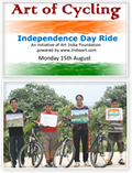Art of Cycling organised a special cycle ride to commemorate the Independence Day. The group consisted of school children, artists, professionals and senior citizens. The cycles were carried out of Pune in the support truck and the cycling started at Khadakvasla. The weather was perfect for cycling - hardly any traffic on the road and cool climate with an occasional light drizzle. The riders were stopping by to take pictures or do sketches. Breakfast was served at Vrindavan Society near Panshet. The spot offers spectacular views of the dam waters below and the setting was inspiring enough for everyone to do their sketching, painting and photography.