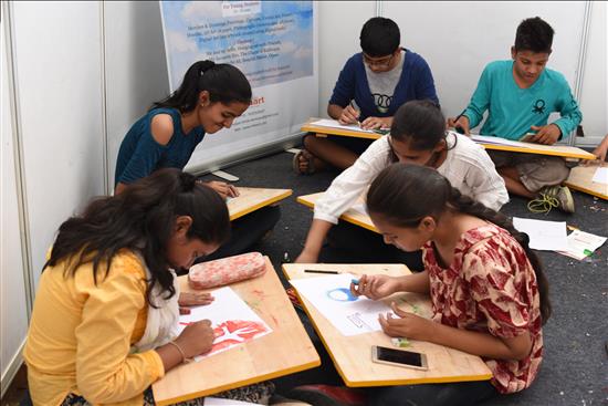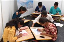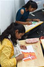 Totally focused in creating their artwork at Khula Aasmaan stall ar Bharatiya Vigyan Sammelan 2017