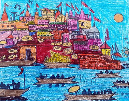 Ganga river, painting by Child Artist Jainil Bhavsar(Born : 2009)