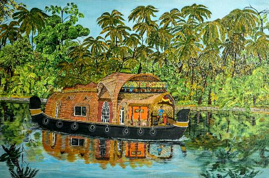 Serene Abode (Kerala backwaters), Painting by Artist Madhavi Srivastava